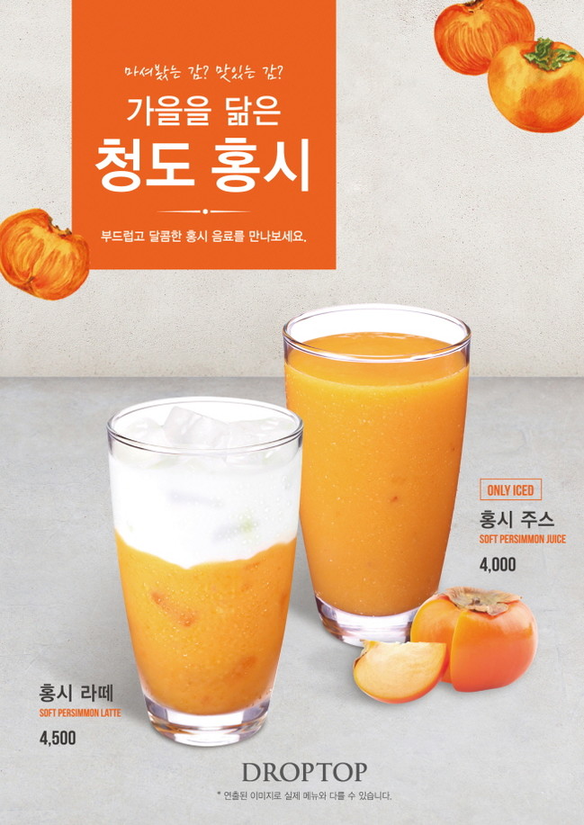커피전문점 카페 드롭탑이 9월 29일 가을 음료 트렌드로 인기를 끌고 있는 버터와 홍시를 활용한 신메뉴 4종을 출시했다.