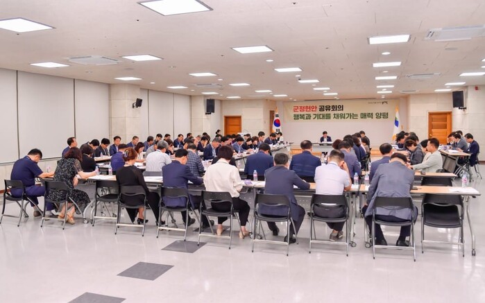 [로컬라이프] 송준형 기자 = 양평군은 11일, 9월 각부서 공유회의에서 군정현안을 논의했다