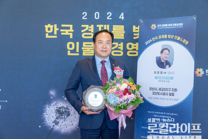 [오산=로컬라이프] 송준형 기자 = 이권재 오산시장이 ‘2024 한국 경제를 빛낸 인물 & 경영상’을 수상했다.