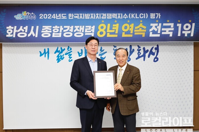 [화성=로컬라이프] 송준형 기자 = 화성시가 ‘KLCI 2024 한국지방자치경쟁력평가’에서 종합경쟁력·경영활동부문 전국 1위, 경영성과부문 전국 3위를 수상했다.