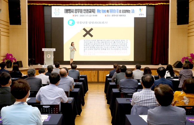 <사진/ 광명시는 7월 17일 시청 대회의실에서 5급 이상 공직자 70여명을 대상으로 성(性) 인권 교육을 실시했다.>