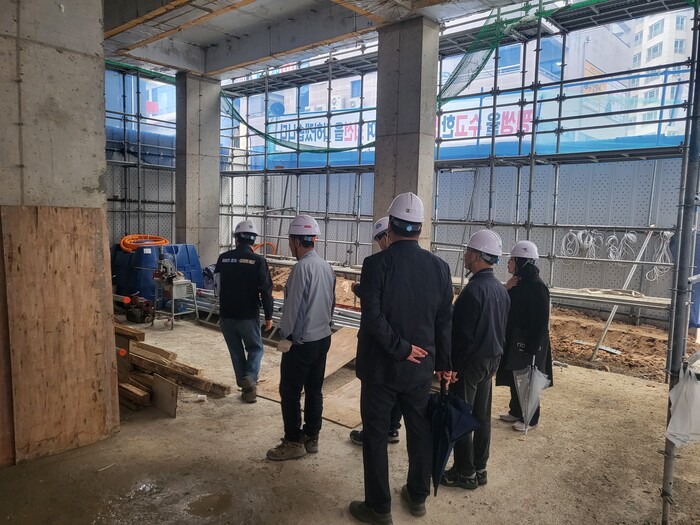 수원시 관계자, 노동안전지킴이 등 9명은 권선구 오목천동의 노유자(老幼者) 시설 신축현장을 찾아 노동자들의 안전모·안전화 등 개인보호구 착용 여부, 추락 장소 방호 조치, 전기·화재 방지 시설 등을 중점적으로 점검했다. 지난 3월 31일 열린 ‘2023년 노동안전지킴이 발대식’ 후 첫 점검이었다.