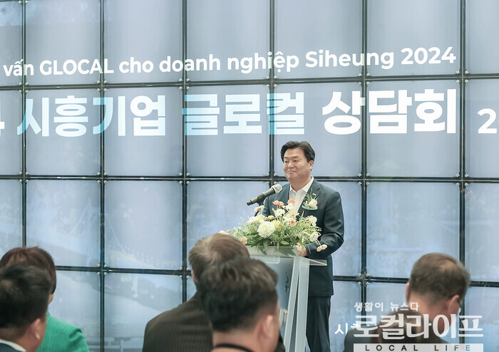 | ▲ 임병택 시흥시장이 ‘2024 시흥기업 글로컬 상담회’에 참석해 인사말을 하고 있다. (사진출처=임병택 페이스북) |