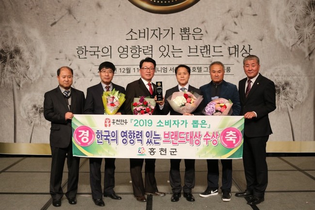 2018년 12월 11일 서울 밀리니엄 힐튼호텔에서 열리는 소비자가 뽑은 ‘2019 한국의 영향력 있는 브랜드 대상’ 시상식에서 홍천한우가 축산물/한우부문에서 영예의 대상을 수상했다.