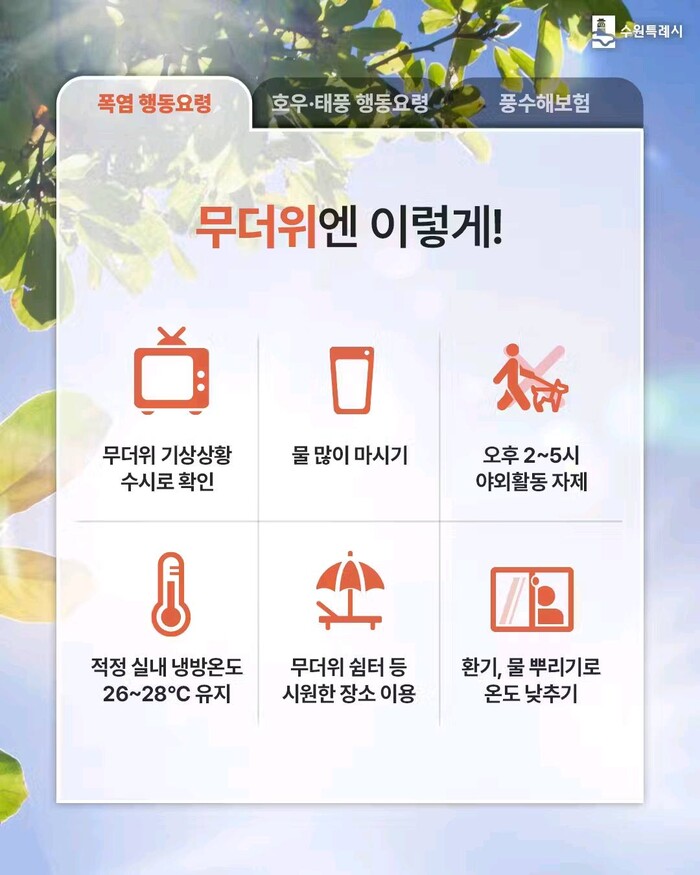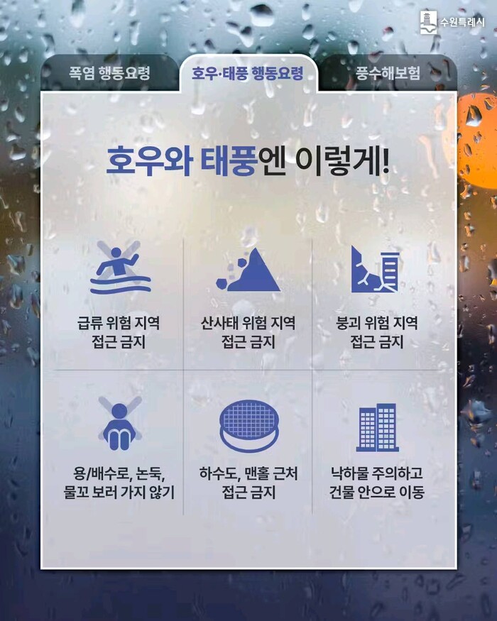 아울러 수원시 공직자들의 철저한 준비와 경각심이 모여 시민의 안전을 지킨다는 각오로 여름철 재난 안전 대책 추진에 만전을 기하겠다고 밝혔다.
