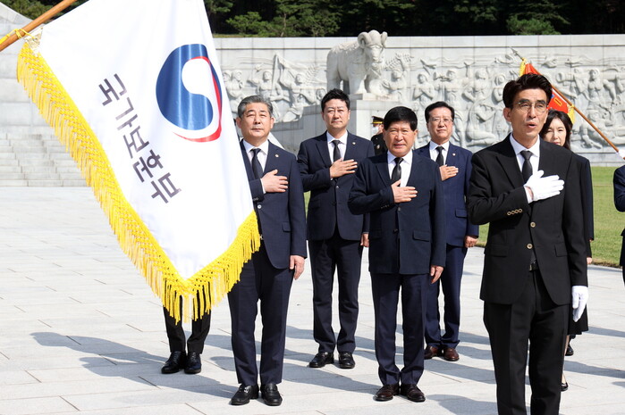 전국 시·도의회 의장과 함께 현충원을 방문한 김 의장은 충혼탑에서 엄숙한 분위기 속에 참배와 분향을 하며 나라를 위해 목숨을 바친 순국선열과 호국영령의 희생을 기렸다.