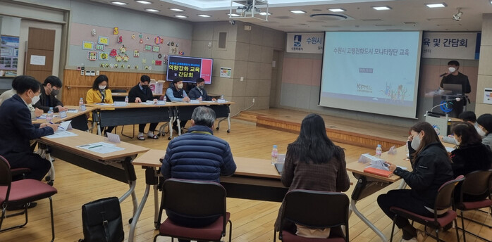사진/ 18일 수원시장기요양지원센터에서 '고령친화도시 모니터단 역량 강화 교육 및 간담회'가 진행되고 있다.(사진제공=수원시)