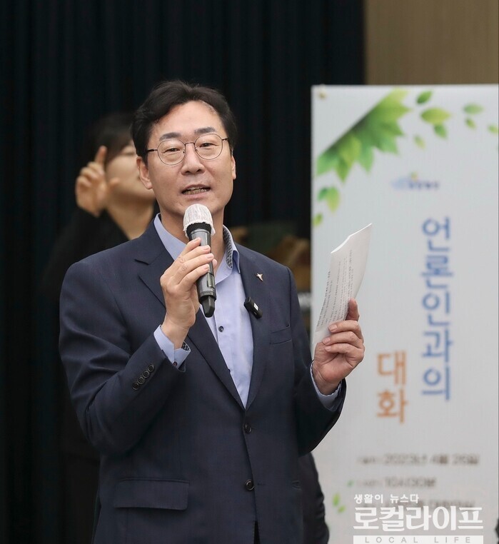 | ▲ 정명근 화성시장이 ‘언론인과의 대화’를 진행하고 있다. (사진출처=정명근 페이스북) |