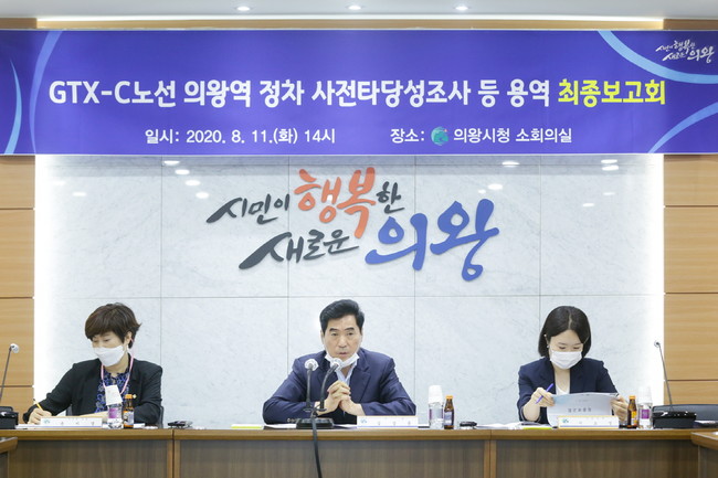 [로컬라이프] 의왕시(시장 김상돈)는 정부가 추진중인 수도권광역급행철도(GTX-C)노선의 의왕역 정차를 위한 사전타당성조사 용역 최종보고회를 11일 김상돈 시장, 이소영 국회의원, 윤미경 시의장 및 시의원, 철도.교통분야 교수 및 전문가 등 20여명이 참석한 가운데 시청 소회의실에서 개최했다.