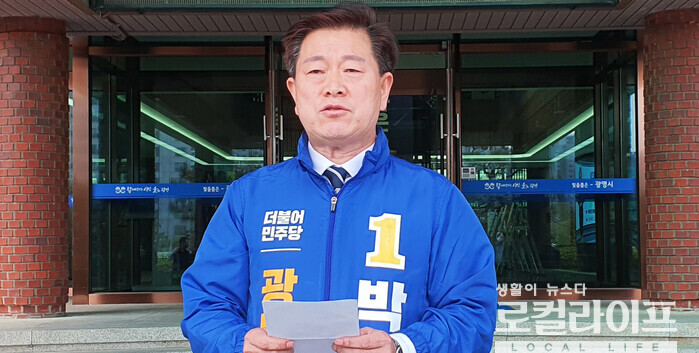 박승원 예비후보는 이 자리에서 “민주당 광명시장 예비후보를 선출하는 여론조사 경선이 하루 앞으로 다가왔다”며 “김기춘, 김윤호, 임혜자 후보 모두에게 힘든 경선과정이었다”고 말문을 열었다.