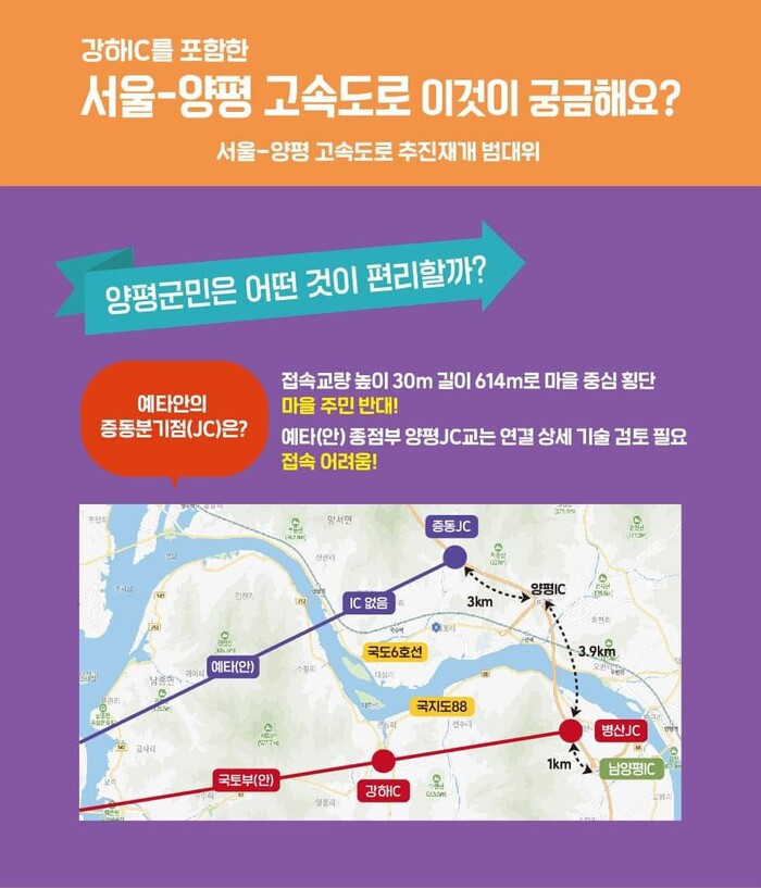 [로컬라이프] 송준형 기자 = 전진선 양평군수는 20일, 자신의 페이스북을 통해 양평군의 현안인 서울양평고속도로의 강하 IC가 왜 포함돼야 하는지 알고계시죠?라며, 자료를 첨부했으니 한번 더 보시고 주변분들에게 알려주시어 함께 했으면 좋겠다고 강조했다.