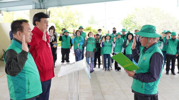 [로컬라이프] 송준형 기자 = 경기도 광주시에서는 25일, 비가 내리고 바람불고 쌀쌀한 봄 날씨에도 방역봉사를 시작하기 위해 각 읍면동 새마을회원들이 한자리에 모였다.