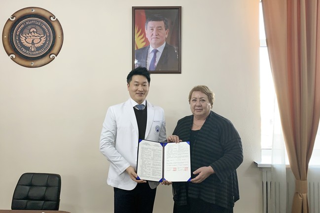 지난 5일(현지시간) 키르기스스탄 국립의과대학 총장실에서 열린 이번 협약식은 자생한방병원 김하늘 국제진료센터장과 키르기스스탄 국립의과대학 쿠다이베르게노바 인디라 오로즈바예브나(Kudaibergenova Indira Orozbaevna) 총장 등 양 기관의 주요 관계자들이 참석한 가운데 열렸다.