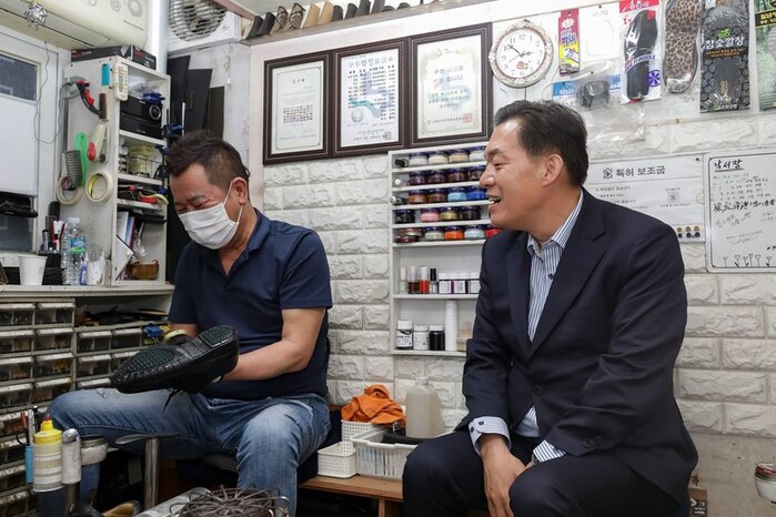 [로컬라이프] 송준형 기자 = 이재준 수원시장 당선인은 16일, 아직 수원시장 예비후보이던 지난 4월, 늘 지나치던 길가의 구둣방에서 조용히 저를 열심히 응원해주시며 오는 손님마다 저를 알려주셨던 진항용 사장님께 감사함을 전했다.
