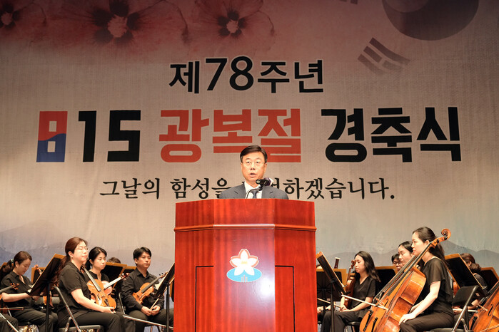 신상진 성남시장은 15일 오전 9시 시청 온누리에서 열린 ‘제78주년 기념 광복절 경축식’에 참석했다.