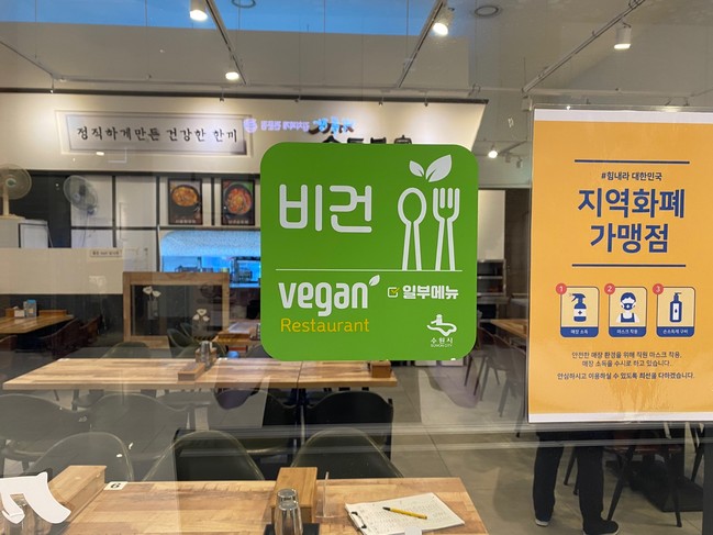 사진/ 비건 식당 지정 표지판<제공=수원시청>