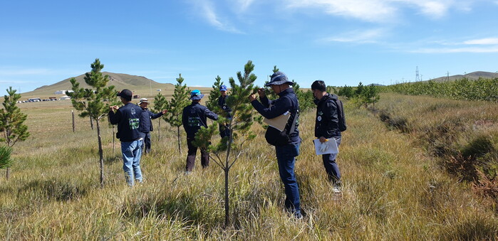 수원시가 수원시민봉사단과 함께 ‘몽골 수원시민의 숲’을 찾아 나무의 생육상태, ‘식생(植生) 피복률’ 등을 조사했다.