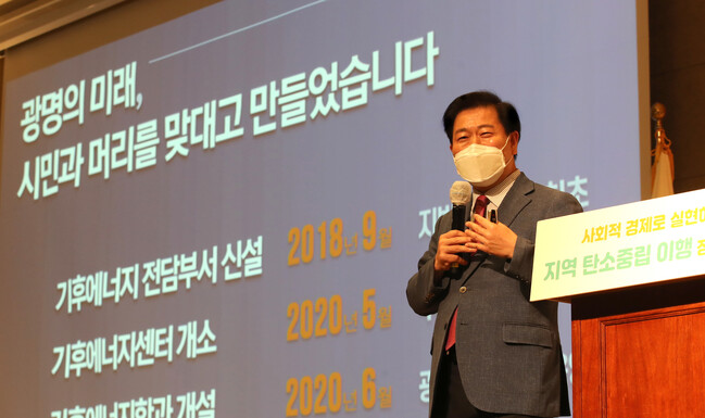 우수사례를 발표한 박승원 광명시장은 “탄소중립 성공을 위해서는 지방정부에 힘을 실어줘야 한다. 인력과 예산 지원이 필요하다”며 “광명시 곳곳에서 10.10.10 소등 행사, 넷제로 에너지카페, 기후 동아리 등 시민의 활발한 활동이 이어지고 있다. 기후위기 대응에 시민과 함께 힘을 모아가겠다”고 말했다.