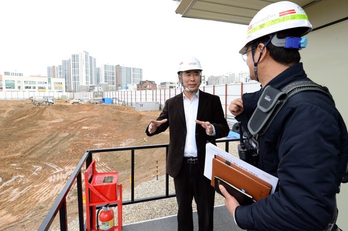 [오산=로컬라이프] 송준형 기자 = 성길용 오산시의회 의장은 27일, 세교2지구 a3블럭(파라곤A)및 a13블럭(호반A) 주택건설현장을 방문·점검했다.