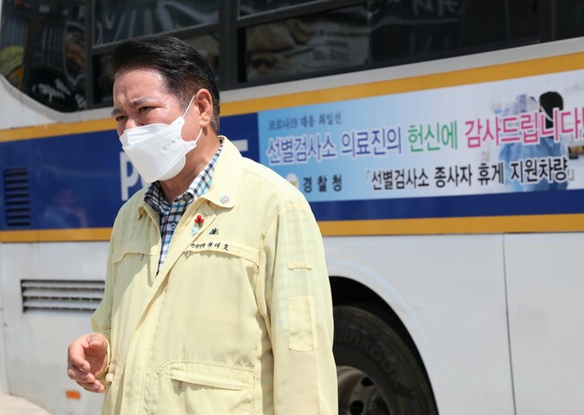 [로컬라이프] 최대호 안양시장은 26일, 경찰청에서 폭염에 고생하는 임시선별검사소 의료진과 종사자들을 위해 44인승 대형버스 2대를 지원해주셨다며, 감사하게도 안양이 경기도에서 최초 설치지역으로 선정되었다고 밝혔다.