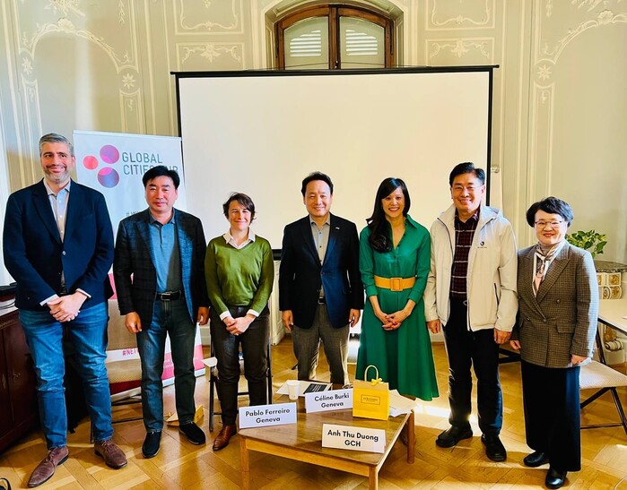 11일, 전 군수는 자신의 페이스북을 통해 오늘은 스위스 제네바시의 글로벌 시티 허브를 방문하여 제네바시가 추진하고 있는 어린이 친환경 식재료 공급실태와 고령화친화도시에 대한 대책 그리고 제네바시의 장점인 멀티 시티로서의 다자주의 정책에 대하여 강의를 청취했다고 밝혔다.
