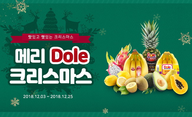 세계적인 청과회사 돌(Dole) 코리아(대표이사 리차드 웨인 토만)가 크리스마스를 맞아 12월 3일부터 25일까지 자사 프리미엄 신선과일 전문몰 ‘돌 마켓에서 특별 기획전을 진행한다.