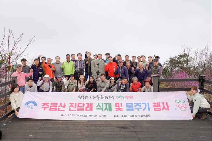 [양평=로컬라이프] 송준형 기자 = 전진선 양평군수는 18일, 군민 여러분과 함께 개군면 추읍산 정상과 진달래 동산에서 진달래를 심는 행사를 진행했다.