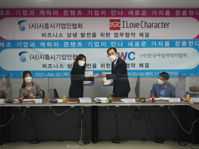 (사)시흥시기업인협회(대표 원영길)는 (사)한국여성캐릭터협회와 지난 22일 코로나19로 어려움을 겪는 시흥시 중소기업 제품 시장 경쟁력 강화를 위한 업무협약을 체결했다.