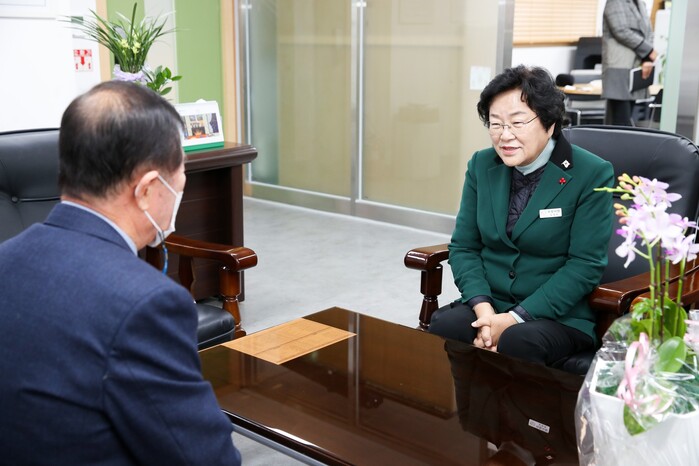 [로컬라이프] 송준형 기자 = 김경희 이천시장은 3일, ‘이천시 노인종합복지관’을 방문하여, 대한노인회장님과 노인복지관 근무하는 분들에게 신년 인사를 했다.