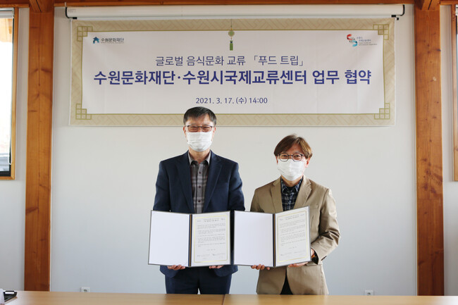 수원문화재단(대표이사 길영배)과 수원시국제교류센터(센터장 이주욱)는 17일 글로벌 음식문화 교류를 위한 업무협약을 체결했다.