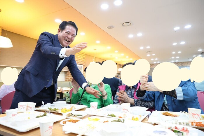 | ▲ 최대호 안양시장이 경로잔치 행사에 참석해 어르신들과 인사를 나누고 있다. (사진출처=최대호 페이스북) |