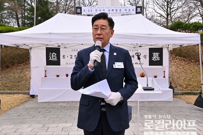 전 군수는 “자유와 평화를 지키기 위해 목숨을 바친 참전용사들의 헌신을 기억하고, 그 유해를 정성껏 모시는 일은 국가와 우리 후손이 반드시 해야 할 책임이다”라며 “한국전쟁의 포성이 멈춘 지 70여 년이 지났지만, 아직도 수많은 참전 용사들이 이름 모를 산야에 잠들어 계신다. 그분들이 하루빨리 가족의 품으로 돌아올 수 있도록 양평군도 지속적인 관심과 예우를 다하겠다”고 말했다.