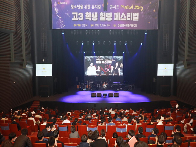 [로컬라이프] 송준형 기자 = 안성시는 지난 1일 코로나19라는 어려운 상황에서도 힘들게 수험생활을 마친 고3 학생들을 위한 힐링프로그램의 일환으로 안성맞춤 아트홀 대공연장에서 뮤지컬 콘서트를 개최했다고 밝혔다.