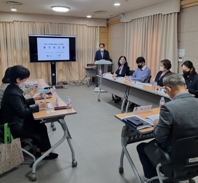 이날 중간보고회에는 수원시 복지여성국장 등 수원시 관계자와 여성폭력 관련 전문가, 연구용역을 담당하는 정보사회개발연구원 관계자 등이 참석했다.