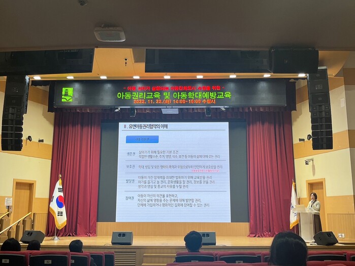 사진/ 22일 시청 대강당에서 열린 ‘2022년 아동권리 및 아동학대 예방 교육’(사진제공=수원시)