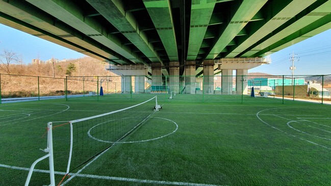 [로컬라이프] 안양시 박달동 친목마을의 서해안고속도로 하부공간에 오는 3월 인조잔디구장이 들어선다. 또 안양새물공원 안에는 파크골프장이 금년 6월 문을 연다.
