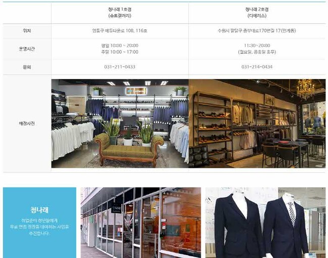 올해는 2개소에서 청나래 사업을 운영한다. 1호점은 ‘슈트갤러리’(영통구 에듀타운로 108), 2호점은 ‘디에리스’(팔달구 중부대로170번길 17)이다. 수원시는 지난 2월, 두 업체와 ‘청나래 업무협약’을 체결했다.