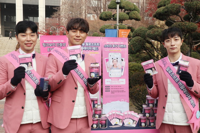 메디힐은 이번 이벤트에서 핑크색 수트를 입은 ‘버블레이저 핑크보이’를 통해 샘플과 사용법이 기재된 미니 브로셔를 배포할 예정이다. 또 ‘버블레이저 핑크보이’와 인증샷을 찍어 인스타그램에 게재하면 추첨을 통해 '필로소프트 버블레이저 패드' 본품을 총 100명에게 증정하는 현장 이벤트도 진행한다.