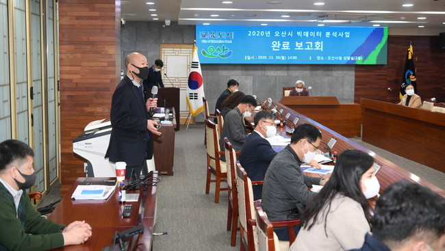 오산시는 11월 30일 시청 상황실에서 곽상욱 시장을 비롯해 실무부서 부서장 및 담당자가 참석한 가운데 ‘2020년 오산시 빅데이터 분석 사업’ 완료보고회를 개최하고 빅데이터 분석사업의 완료보고 및 행정에의 활용 방안 등을 논의했다.