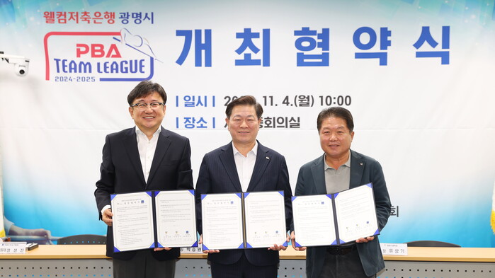 시는 4일 오전 시청 중회의실에서 광명시, 광명시체육회, PBA가 프로당구대회를 오는 11월 19일부터 27일까지 9일간 광명시민체육관에서 개최하기로 협약을 체결했다고 밝혔다.