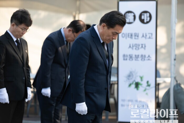 [수원=로컬라이프] 송준형 기자 = 이재준 수원특례시장은 시청에 마련된 이태원 참사 희생자 합동분향소를 찾아 참배했다.
