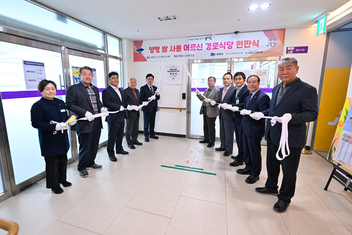 [양평=로컬라이프] 송준형 기자 = 12일 오전, 양평군 노인복지관 어르신 경로식당 및 외식업소 진고을 한정식에서 양평쌀 사용 인증에 따른 현판식을 진행했다.