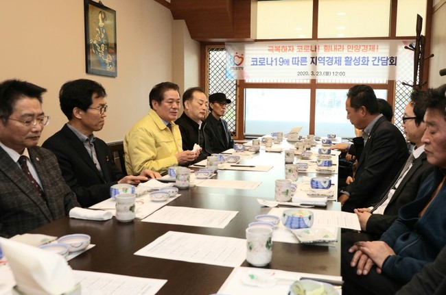 최근 코로나19 장기화에 따른 시의 소상공인 지원방안을 밝히고, 상인들의 애로사항을 수렴하는 자리였다.