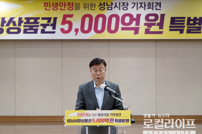 [성남=로컬라이프] 김민정 기자 = 성남시가 내년 1분기에 성남사랑상품권을 5000억 원 규모로 특별 발행한다.