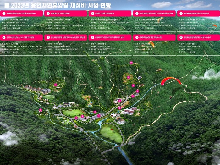 시 관계자는 “도심 속 자연 쉼터로 사랑받고 있는 용인자연휴양림이 더 안전하고 편리한 공간으로 거듭나도록 5개년 관리 계획을 세웠다”며 “지속적으로 유지관리해 여가와 머묾이 있는 풍요로운 휴양공간을 만들어가겠다”고 말했다.
