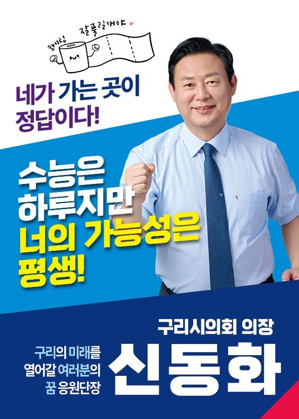 [구리=로컬라이프] 송준형 기자 = 신동화 구리시의회 의장은 10일, 자신의 페이스북을 통해 자랑스러운 구리시 수험생 여러분, 결과보다 빛나는 건 여러분 자신이라며, 그동안 흘린 땀과 눈물이 결코 헛되지 않길 바란다고 전했다.