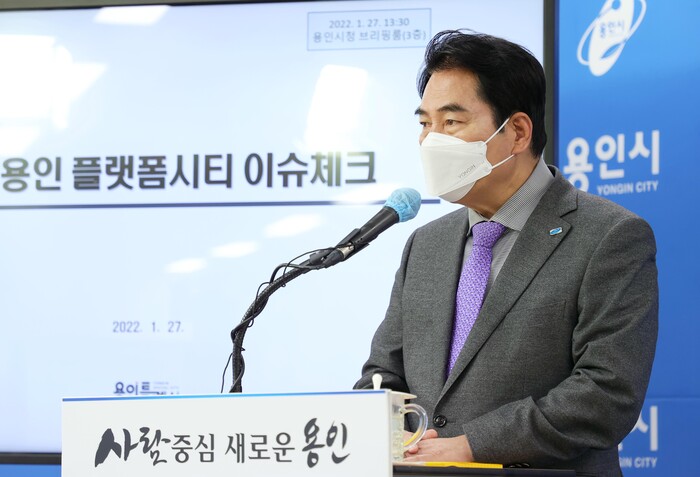 백 시장은 27일 용인시청 브리핑룸에서 긴급 기자회견을 열고, 플랫폼시티 사업이 진행되기까지의 과정과 이익금 배분 구조에 대해 설명하고 의도적 흠집 내기에 대한 입장을 표명했다.