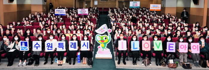 수원시가 21일 시청 대강당에서 ‘2022년 국공립어린이집 보육 교직원 인성교육’을 진행했다.