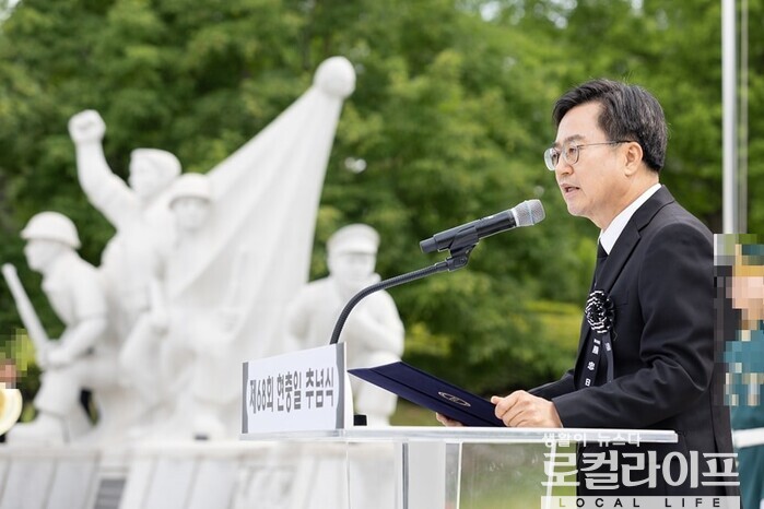 | ▲ 김동연 경기도지사가 ‘제68회 현충일’ 추념식에서 추념사를 하고 있다. (사진출처=김동연 페이스북) |