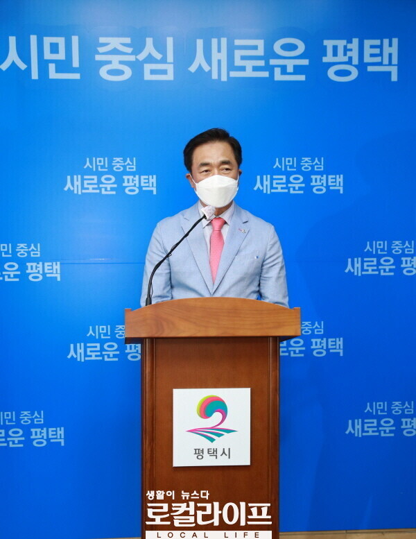 ▲ 정장선 평택시장의 기자회견 모습. (사진제공=평택시)